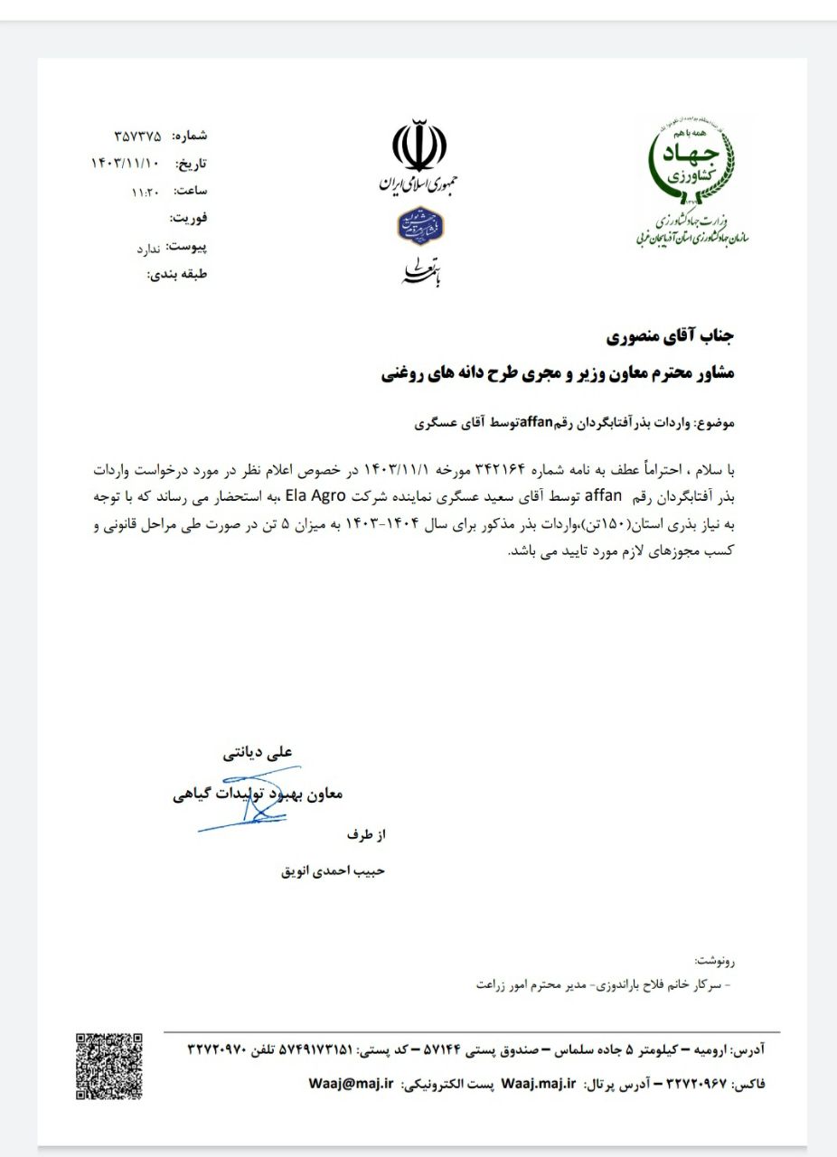 پروانه فعالیت نظام صنفی کارهای کشاورزی